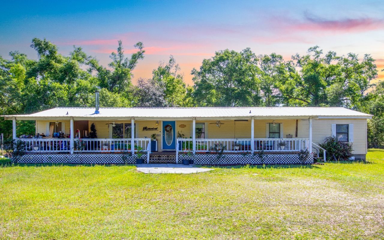 Welcome to your slice of country living in Live Oak, Florida, this well-maintained 4 bed/2 bath doublewide offers 2,052 SF of living space on 29 beautiful acres. Sit back and enjoy quiet mornings or evening sunsets from the nearly full-length front porch overlooking your expansive acreage. Approximately 24 acres are already fenced and cross-fenced into multiple sections, making it ideal for livestock, horses, or anyone needing space and separation for animals, while the remaining acreage offers additional room to expand or customize. Inside, the home features a spacious layout with four bedrooms, including two additional rooms that can easily be used as bedrooms, an office, or flex space depending on your needs. Updates include new flooring installed in 2020, a remodeled master bathroom, a tankless water heater, and a metal roof that is only one year old. The living area is warm and inviting with a wood-burning fireplace designed with a protective exterior, offering both charm and safety. Outside, you’ll also find a second well and power source already in place, perfect for future expansion, an additional homesite, or agricultural use. A barn structure with approximately 12 stalls is located on the property and offers great potential with some repairs, adding even more value for those looking to create a working farm or equestrian setup. If you've been looking for acreage, a home, and room to grow, this one is ready for you!