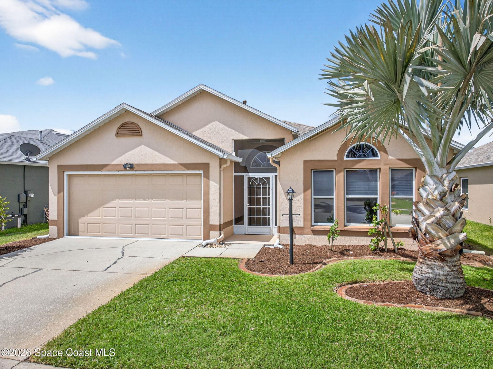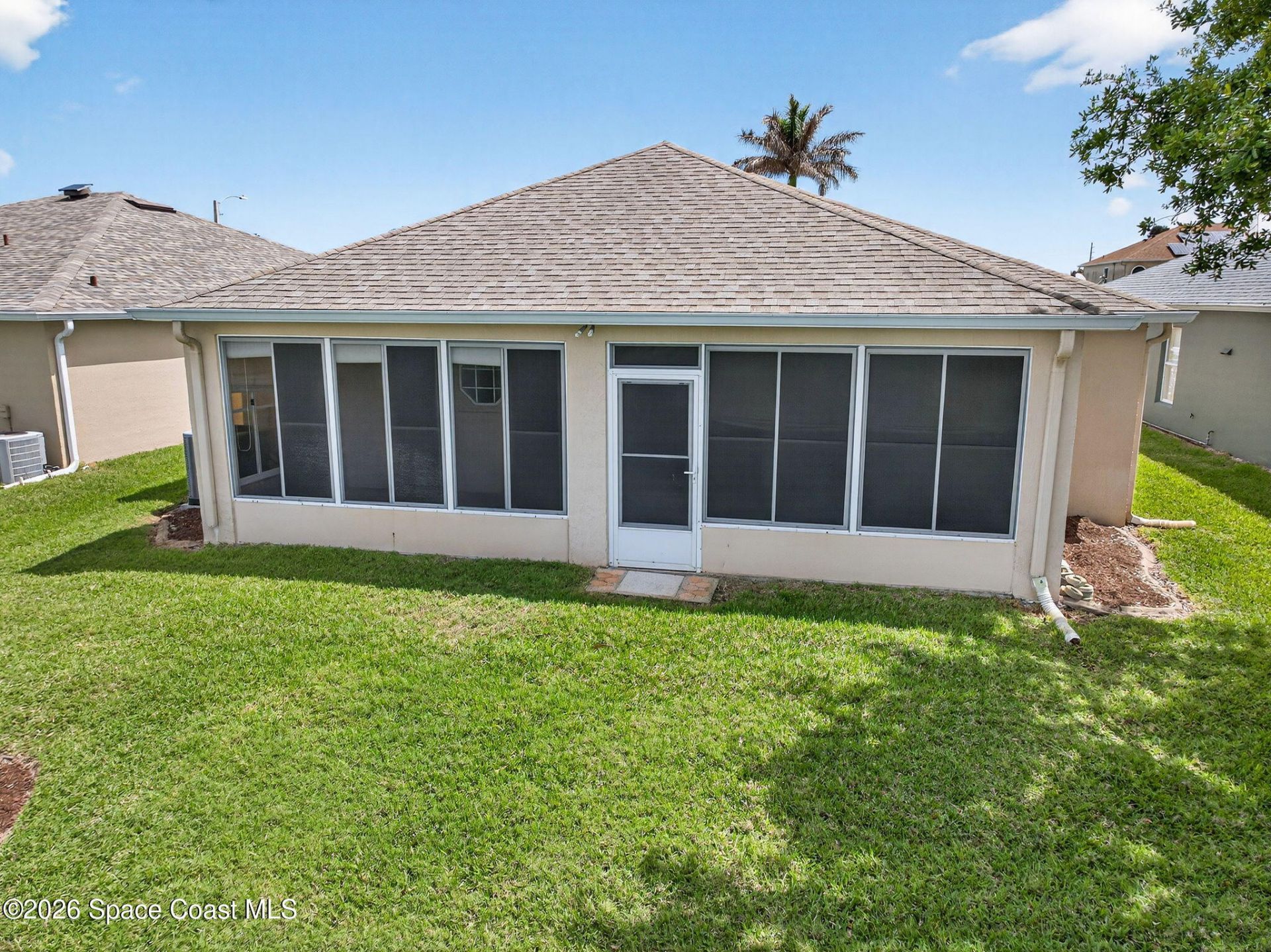 Got a kayak or fishing pole? Located on BIG Lake John-boy in the popular LAKE WASHINGTON community of Magnolia Lakes, this 3-bedroom, 2-bath CONCRETE BLOCK home has FUNCTIONAL UPGRADES: a NEW ROOF (2020), gutters, NEW HVAC (2021) with warranty until 2031, and a SMART Blink doorbell (2023). Additional features include CEILING FANS in every room, whole-house TILE floor and laminate (NO CARPETS), extra CABINETRY WITH PULLOUTS, extra KITCHEN LIGHTING, a HUGE FLORIDA ROOM with screened windows, and HURRICANE SHUTTERS. The HOA is only $450/year, and the neighborhood includes a POOL and basketball court within walking distance. This home is in a PRIME CENTRAL LOCATION - only 10 minutes to the BEACH, 12 minutes to VIERA, and 3 minutes to I-95. It is NOT IN A FLOOD ZONE. Utilities are CITY WATER and SEWER. This beautiful home is a great choice!