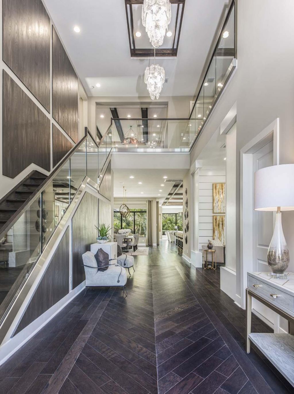 This West floorplan is located on an interior homesite and includes a custom pool along with a summer kitchen featuring a built-in grill, refrigerator, and stone countertops. Outdoor area connects directly to the main living space for indoor-outdoor functionality. The open-concept layout centers around the family room with a linear fireplace and custom tile detail. The home also includes a gas tankless water heater. Artistry Palm Beach offers new homes in a prime Palm Beach Gardens location near top beaches, shops, restaurants, and entertainment. Residents enjoy easy access to Alton Town Center, Gardens Mall, Abacoa, golf, tennis, and highly rated schools like Franklin Academy. Photos of a decorated model home are for reference only. Actual home will differ. Additional features include wood flooring throughout main living areas and bedrooms, a glass-railed staircase with oak treads, built-in closet system in the owner's suite, and an owner's bath with a Roman tub, multiple shower heads, frameless glass enclosure, and upgraded tile.