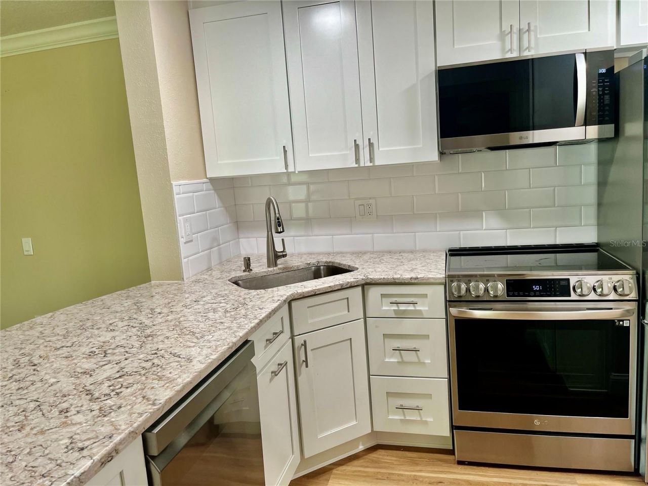 WELCOME TO THIS BEAUTIFULLY UPDATED AND COMPLETELY MOVE-IN READY 2 BEDROOM, 2 BATHROOM CONDO THAT PERFECTLY BLENDS STYLE, COMFORT, AND CONVENIENCE. FROM THE MOMENT YOU STEP INSIDE, YOU WILL NOTICE THE GORGEOUS LUXURY VINYL FLOORING THAT FLOWS SEAMLESSLY THROUGHOUT THE ENTIRE HOME, OFFERING A MODERN LOOK THAT IS BOTH WATERPROOF, SCRATCH-RESISTANT, AND INCREDIBLY EASY TO MAINTAIN. THE KITCHEN IS TRULY A CHEF'S DREAM, FEATURING HIGH-GRADE GRANITE COUNTERTOPS, NEWER STAINLESS-STEEL APPLIANCES, AND SOLID WOOD SHAKER-STYLE CABINETS COMPLETE WITH SOFT-CLOSING DRAWERS AND DOORS. A SLEEK SUBWAY TILE BACKSPLASH ADDS A CONTEMPORARY TOUCH, WHILE THE BUILT-IN SHAKER PANTRY PROVIDES EXCELLENT STORAGE. THE BEAUTIFUL GRANITE BAR EXTENDS FROM THE KITCHEN PASSTHROUGH INTO THE DINETTE AREA, OFFERING FLEXIBLE DINING OPTIONS WITH PLENTY OF SPACE FOR BOTH BAR SEATING AND A FULL DINING TABLE. THE OPEN-CONCEPT LAYOUT CONNECTS THE KITCHEN, DINETTE, AND SPACIOUS LIVING ROOM, MAKING IT PERFECT FOR ENTERTAINING OR EVERYDAY LIVING. THE LIVING ROOM FEATURES A HURRICANE-IMPACT SLIDING GLASS DOOR THAT LEADS TO A TASTEFULLY TILED, SCREENED-IN BALCONY-AN IDEAL SPOT TO RELAX WITH A BOOK, ENJOY A GLASS OF WINE, OR UNWIND IN THE FRESH AIR WITH ROOM FOR OUTDOOR FURNITURE OR EVEN A HAMMOCK. THE PRIMARY BEDROOM IS GENEROUSLY SIZED AND FILLED WITH NATURAL LIGHT FROM WINDOWS ON OPPOSITE WALLS. IT INCLUDES A LARGE WALK-IN CLOSET AND A PRIVATE EN SUITE BATHROOM WITH AN UPDATED VANITY AND A WALK-IN SHOWER FEATURING A RAIN SHOWER HEAD. THE SECOND BEDROOM IS ALSO SPACIOUS WITH A NICE-SIZED CLOSET AND EASY ACCESS TO THE SECOND FULL BATHROOM, WHICH FEATURES AN UPDATED VANITY AND A TUB/SHOWER COMBINATION-PERFECT FOR GUESTS. ADDITIONAL FEATURES INCLUDE A FULL-SIZED WASHER AND DRYER CONVENIENTLY TUCKED INTO A PRIVATE LAUNDRY CLOSET, AS WELL AS A NEWER AIR CONDITIONING SYSTEM AND HOT WATER HEATER FOR ADDED PEACE OF MIND. THE COMMUNITY OFFERS RESORT-STYLE AMENITIES INCLUDING A LAKEFRONT CLUBHOUSE, POOL, AND HOT TUB WITH BEAUTIFUL WATER VIEWS AND A SERENE FOUNTAIN. TENNIS COURTS ARE ALSO AVAILABLE FOR RESIDENTS. CONVENIENTLY LOCATED NEAR SHOPPING, DINING, ENTERTAINMENT, PARKS, BEACHES, AND MAJOR AIRPORTS, THIS CONDO OFFERS THE PERFECT COMBINATION OF LIFESTYLE AND LOCATION. DON'T MISS YOUR OPPORTUNITY-JUST BRING YOUR SUITCASE AND MOVE RIGHT IN!