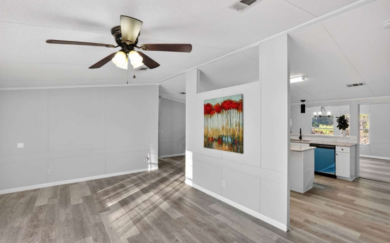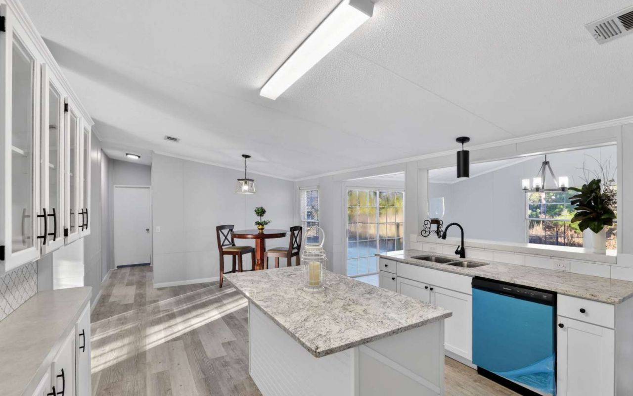 Your new home is ready and waiting for you! This exceptional property features a home situated on 1 acre with NEW: granite countertops, flooring, showers, vanities, lamps, fans, faucets, back and front porches, skirting, water tank, stainless steel appliances, and a newer roof. This home features two living rooms! Each bedroom boasts a spacious walk-in closet for ample storage. Additionally, the land is frequented by roaming deer, providing a serene and picturesque setting. Located in a tranquil area with stunning sunsets and convenient access to highways, this property offers a blend of modern amenities and peaceful surroundings, ideal for those seeking a slice of luxury nestled in nature.