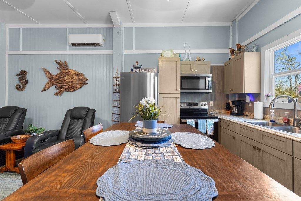 Welcome to the heart of Steinhatchee, where coastal living, convenience, and investment potential all come together. This barndominium is perfectly positioned in one of the most sought-after areas, exactly where everyone wants to be. Situated on a paved road in a peaceful neighborhood, youre just a short golf cart ride to the public boat ramp, Deadmans Bay Marina, Sea Hag Marina, and Roys. You can also take advantage of the nearby sidewalk for an easy stroll or bike ride to your favorite local spots. From the moment you arrive, the property makes an impression with its rock driveway, inviting landscaping, and a vibrant bottle brush tree out front where the hummingbirds put on a show. Its the kind of place that instantly feels like home. Inside, the main home features an open coastal layout centered around a beautifully designed kitchen with custom cabinetry and plenty of storage. The space is both functional and welcoming, perfect for everyday living or hosting guests. Right off the main home, theres a separate 1/1 suite thats perfect for guests, family, or even extra rental income, all connected by the covered entertaining area. The outdoor setup is where this property really shines. Designed with entertaining in mind, the covered space ties everything together, creating the perfect flow for gatherings year round. Whether its fish fry nights, scallop season with friends, or unwinding after a long day on the water where youve caught your limit in redfish or scallops, this is where the memories are made. Theres even an outdoor shower for the kids to rinse off before heading out for dinner and live music at Kathis Krabs. The property also includes 3 RV hookups, giving you even more options for hosting guests or maximizing income potential. Built with quality in mind, this barndominium is fully insurable and built to code, offering peace of mind along with its charm and versatility. With multiple living spaces and a prime location, this property offers a rare opportunity to enjoy the Steinhatchee lifestyle while creating strong income potential. Whether youre looking for a personal retreat, an investment, or both, this one truly delivers.