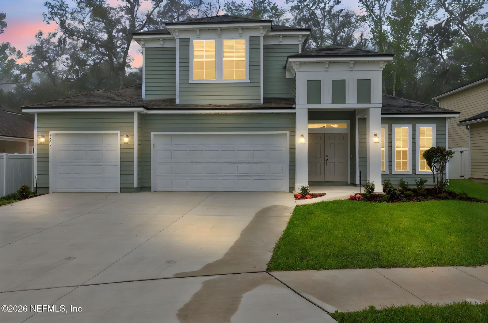 Welcome to this exquisite Boca II home, a perfect blend of luxury and comfort, located in the prestigious gated community of Jennings Farm. This spacious residence offers 3285 square feet of living space, thoughtfully designed to accommodate both family living and entertaining.The kitchen is a chef's dream, featuring 42'' cabinets, elegant quartz countertops, and top-of-the-line appliances. It seamlessly flows into the living areas, where wood-look tile floors add a touch of sophistication and durability.Situated on a prime corner lot, this home provides additional privacy and space, a privacy fence already in place in the back yard making it an ideal retreat. As part of a natural gas community, you'll enjoy the efficiency and convenience that comes with it. Welcome to Jennings Farm, a Gated Community with NO CDDs and Natural Gas, offering an exceptional lifestyle in a highly rated school district. Conveniently located near CR-220, First Coast Expressway, and Blanding Blvd, this community strikes the perfect balance between suburban tranquility and modern convenience. Jennings Farm features a host of desirable amenities, including a resort-style pool, two pickleball courts, two Bark Parks for your furry friends, and a playground for the little ones. The amenity center provides a welcoming gathering space, while the open-air pavilion is ideal for outdoor relaxation. With low HOA fees and thoughtfully designed features throughout, Jennings Farm offers everything you need for an efficient, comfortable, and active lifestyle.