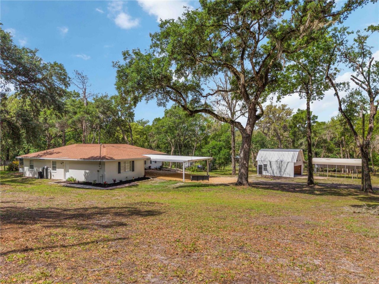 Welcome to your private retreat at 2293 Spring Lake Hwy in Brooksville! Situated on 2.5 acres, this beautifully remodeled home offers the perfect balance of space, privacy, and modern comfort. With approximately 2,360 square feet of living space, this 3-bedroom, 2-bathroom residence also includes a spacious bonus room and an additional flex space-ideal for a home office, guest area, media room, or hobby space-providing versatile living options to suit a variety of needs. Set back from the main road, the property offers a quiet, low-traffic setting, creating a peaceful country atmosphere while still maintaining convenient access to nearby conveniences-approximately 10-15 minutes to downtown Brooksville and about 20-30 minutes to Wesley Chapel's shopping, dining, and retail destinations. The home has been thoughtfully updated throughout. The kitchen has been renovated with updated quartz countertops and appliances, while both bathrooms have been refreshed. Luxury vinyl flooring runs throughout the home, complemented by fresh interior and exterior paint and updated landscaping, creating a clean, modern feel from the moment you arrive. Built in 1990, the home also includes a central vacuum system for added convenience. Outdoors, the property truly stands out. With no HOA, you have the flexibility to store your boat, RV, or other recreational vehicles. The expansive 2.5-acre lot offers plenty of room to spread out and enjoy, and includes an additional structure that can be used as a workshop, storage space, or shelter for equipment. A fenced area provides added functionality for pets or outdoor use, and the property offers the potential for livestock, allowing you to fully embrace a rural lifestyle. If you're looking for a move-in ready home with land, privacy, and room to grow, this property presents an exceptional opportunity.