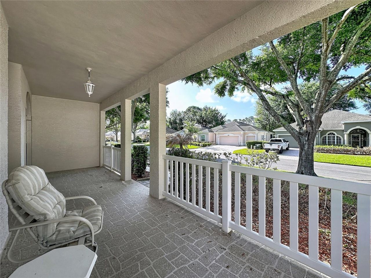 One or more photo(s) has been virtually staged. Want a large front porch to sit and relax and enjoy your neighbors. Here it is! A popular St Clair model with 1879 heated SF, 3 BD/2 BA with a 2 car garage. Great curb appeal with the paver brick drive and walk way. Newer luxury vinyl plank flooring throughout the home except for bathrooms that have tile. Newer neutral paint - same color theme throughout the home. The kitchen has stainless appliances, New roof in Aug 2014, HVAC changeout in Aug 2012 and water heater in 2012. This model has a formal dining room & a formal living room. Lots of closet space in this model. The Primary bathroom has dual sink vanity, walk in shower , garden tub and private toilet area. There is a large enclosed lanai in the back (29 X 08) with vinyl windows and tile flooring.. Kings Ridge is a 55 Plus gated golf community nestled in the rolling hills of Clermont. Enjoy the Kings Ridge Royal life style in the multi-million $ clubhouse with 3 heated pools, spas, tennis & pickle ball courts, billiards, shuffle board, shows, Bingo, cards and clubs galore. The monthly maintenance fees include: lawn maintenance including trimming of shrubs, care of irrigation system & irrigation water, dish cable TV w/ fiber optic cable thru Opticaltel,/Fibernow internet & home phone, maintenance of roads and outside painting of home every 7 years. Take your golf cart to the Kings Ridge Plaza where you can do your grocery shopping, banking or dine out..
