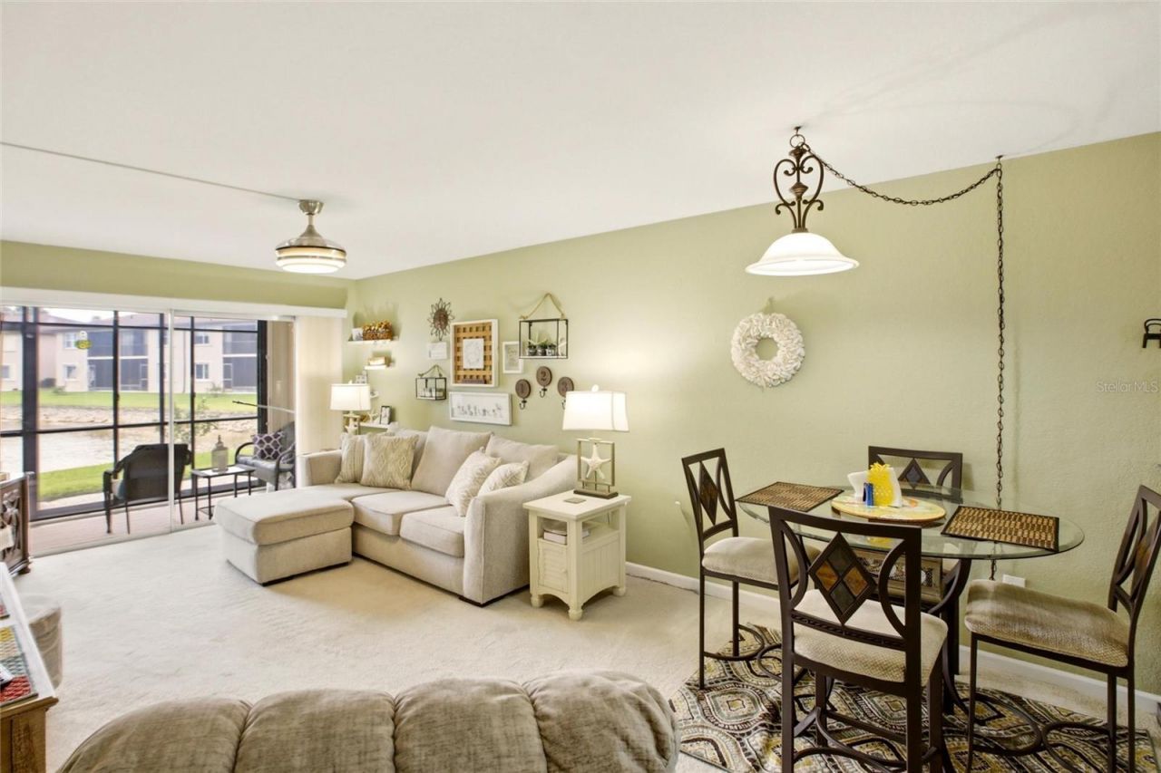 Located in the desirable Deep Creek Gardens community, this 2-bedroom, 2-bathroom first-floor lakefront condo is ready for you to begin your Florida lifestyle. Enjoy peaceful lake views from this well-appointed residence featuring a great room floor plan that seamlessly blends the living, dining, and kitchen areas into one open and inviting space. The expansive great room is filled with natural light and offers a bright, airy feel, highlighted by neutral wall tones and plush carpet flooring. The living area flows effortlessly into the dining space, making it ideal for both everyday living and entertaining. Large sliding glass doors open to a screened-in lanai overlooking the lake, extending the living space outdoors and creating a perfect spot to relax. Easy-to-use accordion-style hurricane shutters are included for added peace of mind. The open kitchen overlooks the great room and features generous cabinetry, granite countertops, breakfast bar seating, and a suite of modern appliances-perfect for hosting or casual dining. A conveniently located stacked washer and dryer is tucked away in a closet just off the kitchen. The primary bedroom offers tranquil lake views, a walk-in closet, and an en-suite bathroom with a full bath. The guest bedroom is bright and spacious and also includes a walk-in closet. The guest bathroom features a walk-in shower stall. Additional highlights include assigned parking, ample guest parking, and close proximity to the community's amenities, including a heated pool, tennis courts, bocce ball, clubhouse, and shuffleboard courts. Located in the Deep Creek Gardens community, this condo enjoys a convenient Punta Gorda location close to shopping, dining, schools, medical facilities, and easy access to I-75. Residents are just minutes from Deep Creek Park, Deep Creek Golf Club, and everyday conveniences, with historic downtown Punta Gorda and Fishermen's Village nearby offering waterfront dining, boutique shopping, entertainment, and a marina. The area also provides quick access to Punta Gorda Airport, while Southwest Florida's Gulf beaches-including Englewood Beach, Boca Grande, and Manasota Key-are within a comfortable driving distance, making this an ideal full-time or seasonal residence.**PLEASE ENJOY THE 3D INTERACTIVE VIRTUAL TOUR ASSOCIATED WITH THIS LISTING**