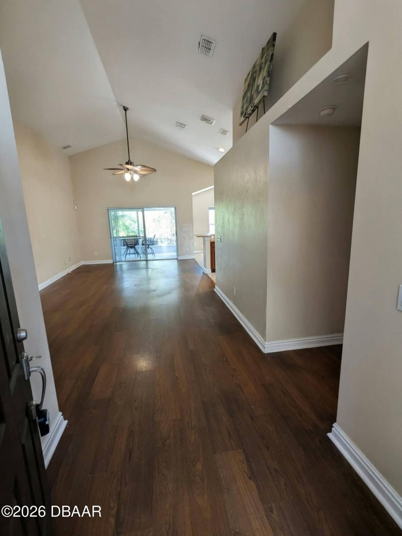 Stunning 3bedroom/2bath home located on a peaceful cul-de-sac in Orange City. The grand entrance opens to a spacious living area with cathedral ceilings, plant shelves, and a split floor plan for privacy. The center island kitchen flows into the dining area, making it perfect for entertaining or everyday family life. The master suite features a garden tub, separate shower, double sink vanity, and a walk in closet.Enjoy Florida living with a screened patio and fenced backyard, all within the desirable Fawn Ridge subdivision, conveniently close to medical facilities, shopping, dining, schools, and I-4 for easy commutes to Daytona Beach or Orlando.A move-in ready home that combines style, comfort, and functionality.