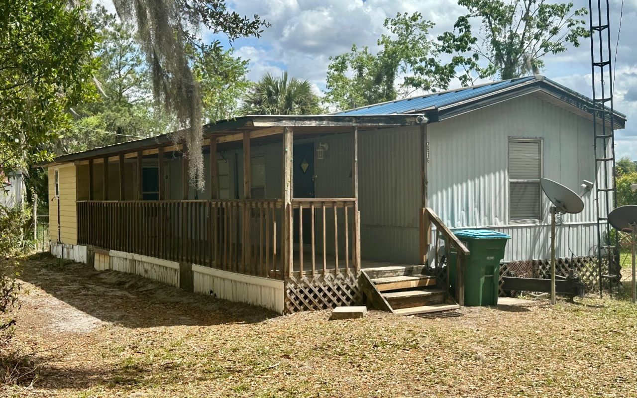 Rare opportunity in the country! Small refinished 2/1 SWMH on half an acre. New paint and flooring. Kitchen has new cabinets, appliances and butcher block countertops. There is a stainless steel farm house deep sink, wet bar and coffee bar. Laundry is outside off the front covered deck in a separate enclosed room. Property is partially fenced. Currently using a shared driveway, but there is a separate drive for access with a gate further east of existing driveway. Multiple water spigots and additional electrical outlets for more outbuildings. One carport for parking.