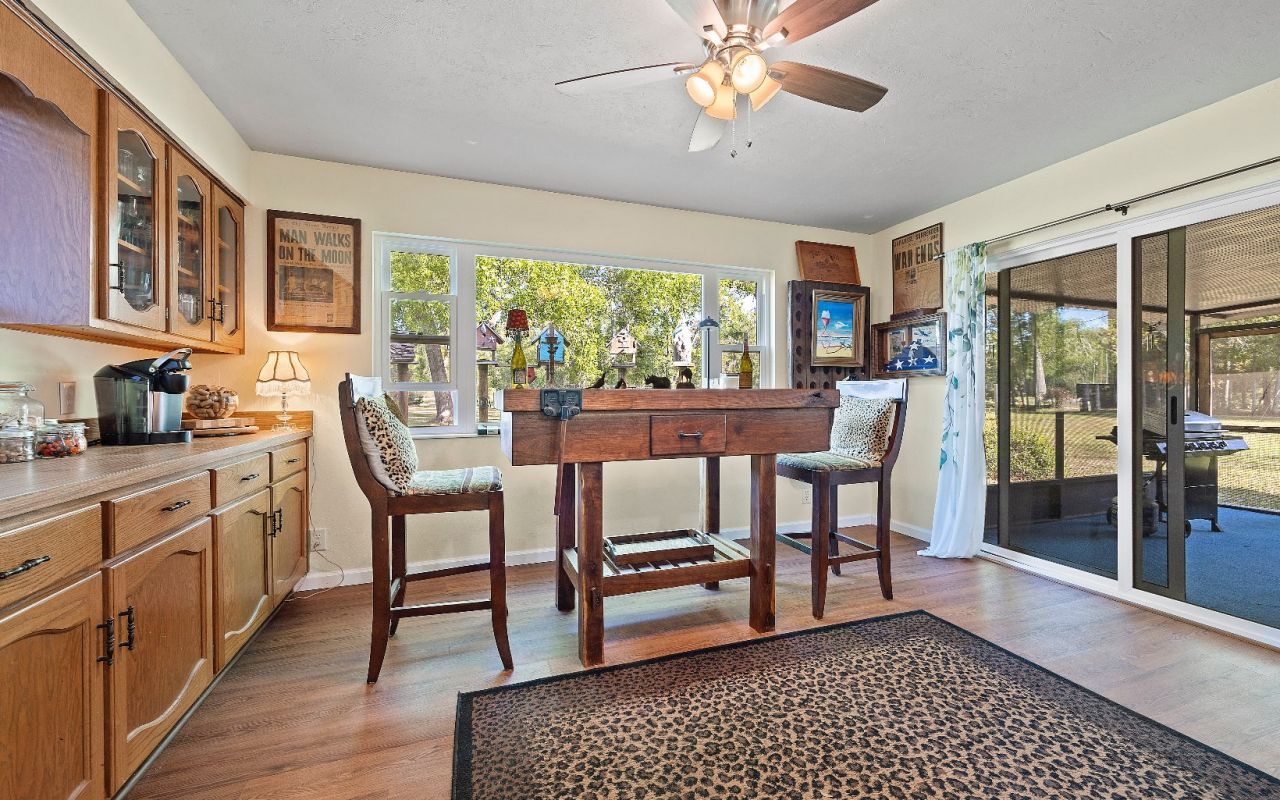 Step into a home that feels like a work of art where every detail has been thoughtfully refreshed and every space tells a story. Recently remodeled by a talented painter, this home truly serves as a blank canvas brought to life with style and intention. Inside, you’ll immediately notice the fresh paint, updated windows, and beautiful new flooring that flows through most of the home. The large living room windows flood the space with natural light, highlighting the stunning pine walls and ceilings that add warmth and character you don’t find every day. The kitchen has been upgraded with new appliances, creating a functional and inviting space perfect for gathering, while the master suite features a newly updated vanity for a clean, modern touch. Step outside and the charm continues. A brand-new deck overlooks a beautifully landscaped yard shaded by large, mature oak trees perfect for morning coffee or winding down in the evenings. With a new roof, new siding, and fresh exterior paint, the heavy lifting has already been done for you. An attached garage adds everyday convenience, while the spacious lot also includes a storage shed and a large RV/boat shelter, giving you plenty of room for all your extras. Located just outside the city limits, you’ll enjoy the peace of a family-friendly neighborhood where kids still ride bikes and play outside, all while being just minutes from town and top-rated schools in the state. This home isn’t just remodeled, it’s been reimagined.