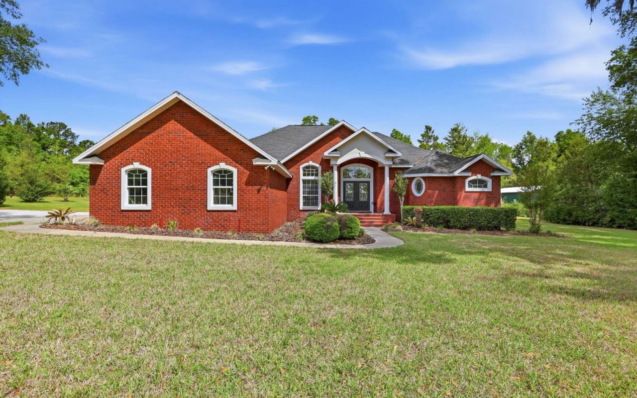 Pristine, move-in ready pool home located in beautiful North Florida! This immaculate property offers a desirable split floor plan and thoughtful design throughout. The spacious kitchen features newer quartz countertops, custom cabinetry, and an eat-in bar, opening seamlessly to the large living room with direct access to the outdoor living spaces—perfect for entertaining or relaxing by the pool. The owner's suite is generously sized and offers a spa-like bath with a tiled shower, jacuzzi tub, double vanities, and separate walk-in closets. A versatile office/flex room provides endless possibilities including a game room, second living area, or home office. Bedrooms 2 and 3 share a convenient Jack-and-Jill bath, while the 4th bedroom enjoys access to the pool bath. Step outside to the back porch lanai overlooking the pool and beautifully manicured yard. The 25 x 30 workshop with roll-up door provides excellent space for hobbies or equipment. The traditional brick elevation, full-yard irrigation system, and lush St. Augustine grass creates a picturesque setting with outstanding curb appeal. Recent improvements, including a newer Architectural Shingle roof 2017, plumbing fixtures and septic tank 2023, kitchen appliances & new well tank 2024, hot water heater, carbon filter water softener system & 1/2 HP well pump, and pool pump 2025! Conveniently located just minutes from town and I-75 for easy access to surrounding communities, this exceptional property truly has it all.