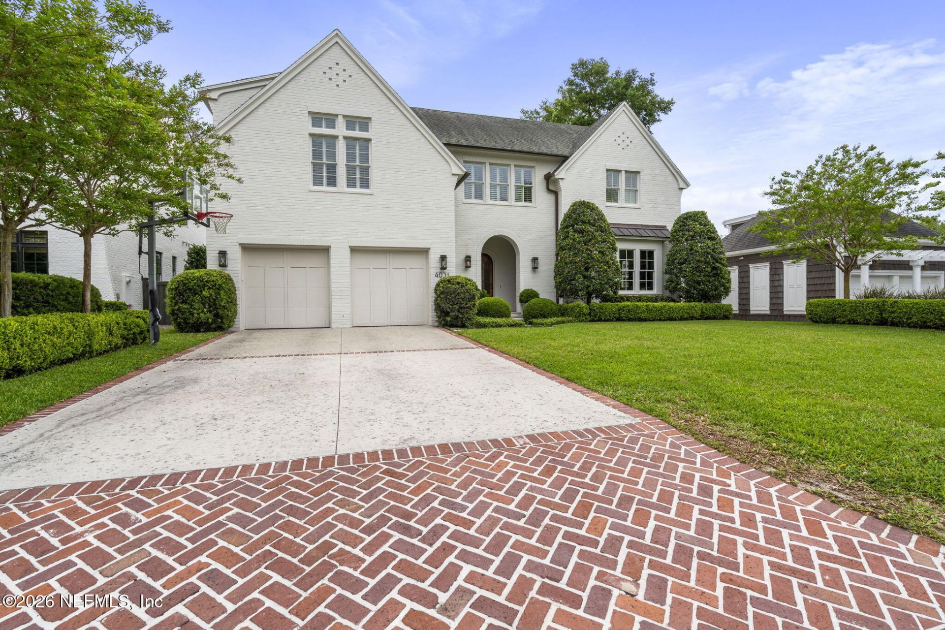 In one of Jacksonville's most desirable neighborhoods, this custom-built 2018 residence blends classic architecture with refined, modern living across 4,428 square feet.From the moment you arrive, the painted brick exterior, symmetrical lines, and manicured landscape set a tone of understated elegance. Inside, every detail has been carefully curated--real oak hardwood floors finished in place, soaring 10' ceilings downstairs, and custom millwork that adds warmth and character throughout.The heart of the home is a beautifully appointed chef's kitchen featuring Wolf and Sub-Zero appliances, natural quartzite countertops, and an expansive island designed for gathering. Just beyond, a vaulted den invites relaxed living, while the formal dining room--wrapped in custom wood paneling--offers a striking yet intimate space for hosting.A thoughtfully designed layout enhances everyday living:Mudroom with built-ins off the garage Private office (or fitness space) with generous storageSpacious walk-in pantry with cabinetry and a second refrigeratorThe primary suite is a true retreat, featuring a vaulted ceiling, a private sitting room, and French doors that open to a balcony overlooking the backyard. A large bonus room above the garage, complete with four built-in bunk beds, creates the perfect space for family, guests, or play.Step outside and experience a backyard designed for both relaxation and entertaining. A covered patio with Peacock Pavers flows seamlessly to a resort-style pool, framed by lush landscaping and a charming pergola lounge area, an ideal setting for quiet mornings or evening gatherings.Additional highlights include:Andersen architectural windowsSpray foam insulation for efficiencyTwo tankless Rinnai water heatersDedicated upstairs laundry with sink and abundant storageThis home is defined by quality and timeless appeal.
