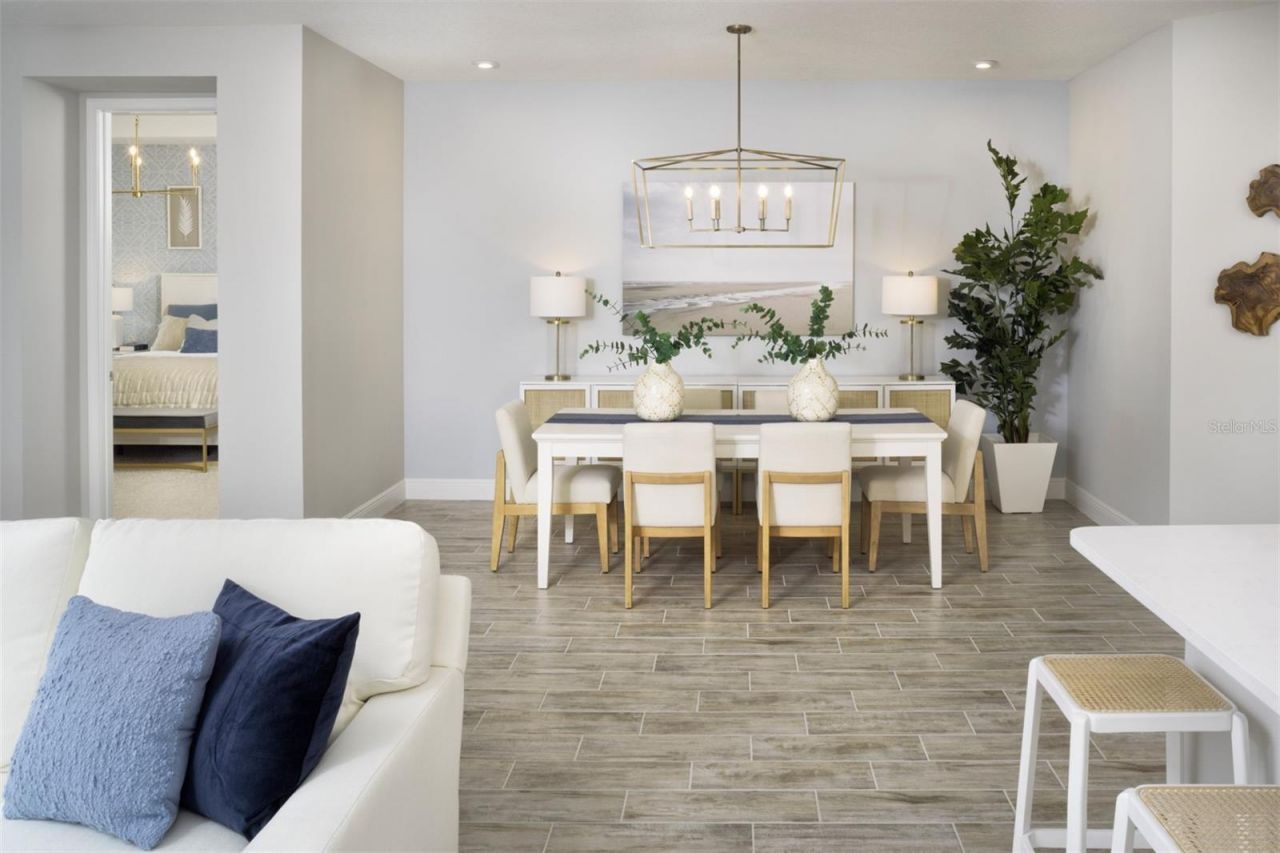 Model home available with leaseback. The Glades Model home in Windwater is now available for purchase with a leaseback from seller. This spacious one story open concept plan offers 3 bedrooms, three baths, study and two-car garage. Many designer touches includes glass front door, triple door 12't glass sliders onto the screened lanai, accent wall in great room, wood plank accent walls in foyer, wall accents in study, and more. Primary suite provides more than enough space for king size bed with nightstands, dresser, foot stool or bench at the bottom of the bed and more. It has accent wall and tray ceiling with designer fixture. The en suite has glass enclosed shower, private water closet, dual sink raised height vanity and oversized walk-in closet. Bedroom 2 is located in the front of the house with an adjacent full bath and bedroom 3 is located across the foyer, also with easy access to a full bath. The study is located just past the bedrooms and has glass French doors to help maintain peace and quiet. The main living area is open kitchen, dining and great room with beautiful pond views. The oversized sliders open up to one side to extend the usable living space. Screened lanai with fan helps keep that area comfy. Kitchen features all stainless appliances, including the fridge. Laundry room includes washer and dryer. This one is a must see! Quaint front porch has room for rockers to enjoy those breezy Florida evenings. This home is offered on a leaseback. Home comes as-is and unfurnished. Purchase will include a limited 1-year warranty.