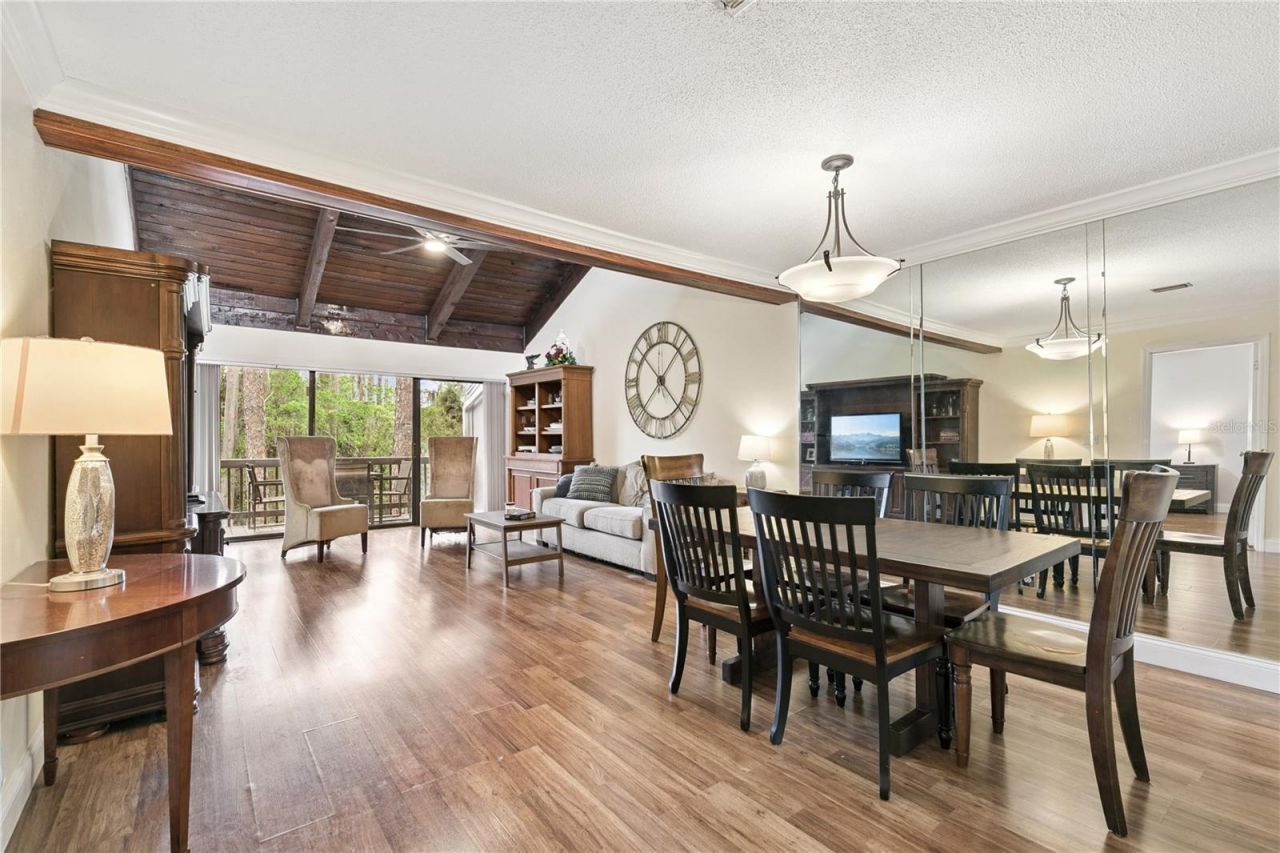 Welcome to this charming 2-bedroom, 2-bath condominium offering approximately 1,123 square feet of light filled living space. Designed with an open concept layout, this home features vaulted ceilings, exposed beams, and abundant natural light throughout, creating a warm and inviting atmosphere.The spacious living area showcases laminate flooring and seamlessly flows into a well-appointed kitchen complete with stainless steel appliances, ample cabinetry, and generous counter space, perfect for everyday living and entertaining.Enjoy peaceful, nature inspired surroundings from your private covered porch and expansive deck overlooking a tranquil wooded setting and nearby creek. Large windows throughout bring the outdoors in, enhancing the home's serene ambiance.A perfect blend of comfort, space, and natural beauty. Ideal for those seeking a quiet retreat with convenient living. Schedule your private tour today.