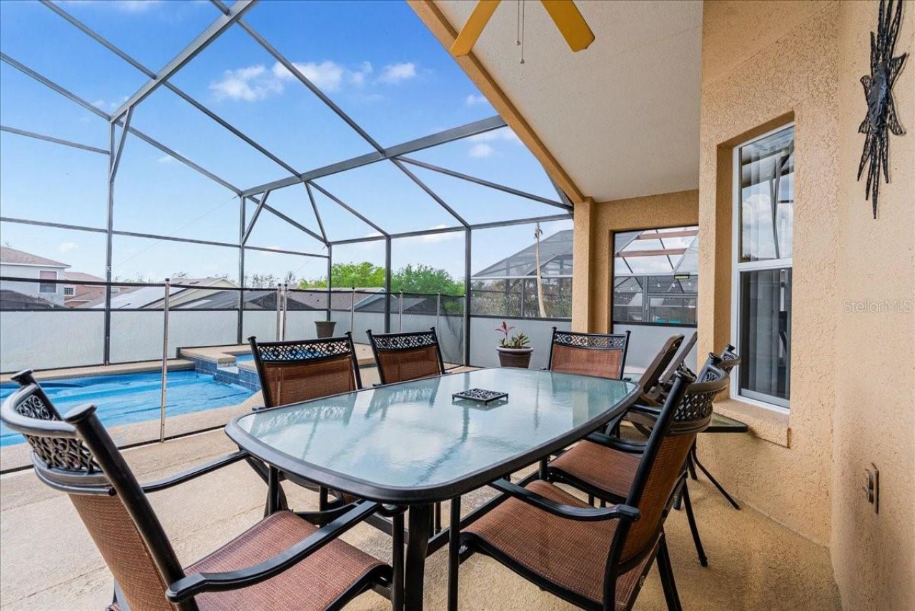 Welcome to this beautifully maintained 4-bedroom, 3-bathroom pool home in the gated Highgate Park section of Legacy Park. Positioned on an elevated lot with rear neighbors below, this single-story home features a south-facing pool and spa with covered lanai-perfect for relaxing or entertaining. Offered fully furnished, the home showcases pride of ownership throughout including a new roof (2024), pool pump (2024), refrigerator (2025), water heater (2025), A/C (2018), pool heater (2019), and washer/dryer (2021). The layout includes a spacious primary suite with dual walk-in closets and an ensuite featuring dual sinks and a separate tub and shower stall. A second ensuite bedroom and two additional guest rooms make this perfect for vacation rental or extended family. Currently a successful vacation rental the garage has been converted into a games room but this home would make a great primary residence, second home for a lucky snowbird or continue as an investment property. Minutes from Disney, shopping, dining, and major attractions this is a real must see home guaranteed to please.