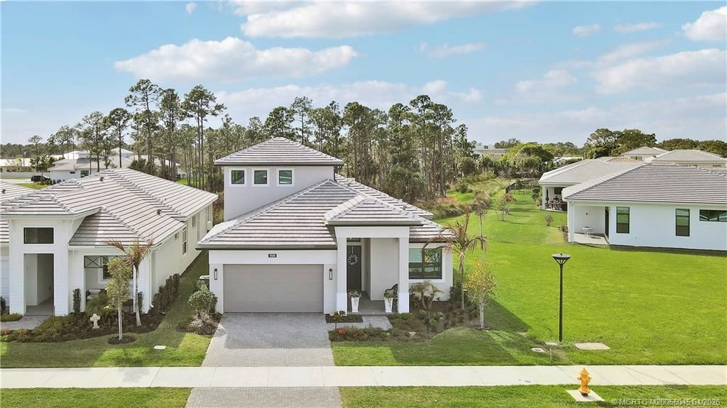 Beautiful preserve views from this newly built Kolter home in Cove Royale! Built in 2025 & move-in ready, the home spans 2,624 sq. ft. under air & lives primarily as a single-story layout, w/ 3 beds, a flex space & 3 full baths on the main level. The spacious primary suite features a custom walk-in closet w/ built-in vanity. The upstairs bonus room upgrade includes a closet & half bath- offering a potential 4th bedroom or 2nd living area. The main level features a stunning gourmet kitchen anchored by an oversized island w/ seating, quartz countertops, a walk-in pantry, & elevated finishes like designer lighting & plantation shutters. High ceilings allow natural light to carry across the open layout. The covered lanai, equipped with a motorized screen, overlooks the preserve. The homesite is also positioned to take advantage of the large adjacent green space, & is within close proximity to the community pool. New, CBS construction, Impact glass, & energy efficiency =Peace of mind!