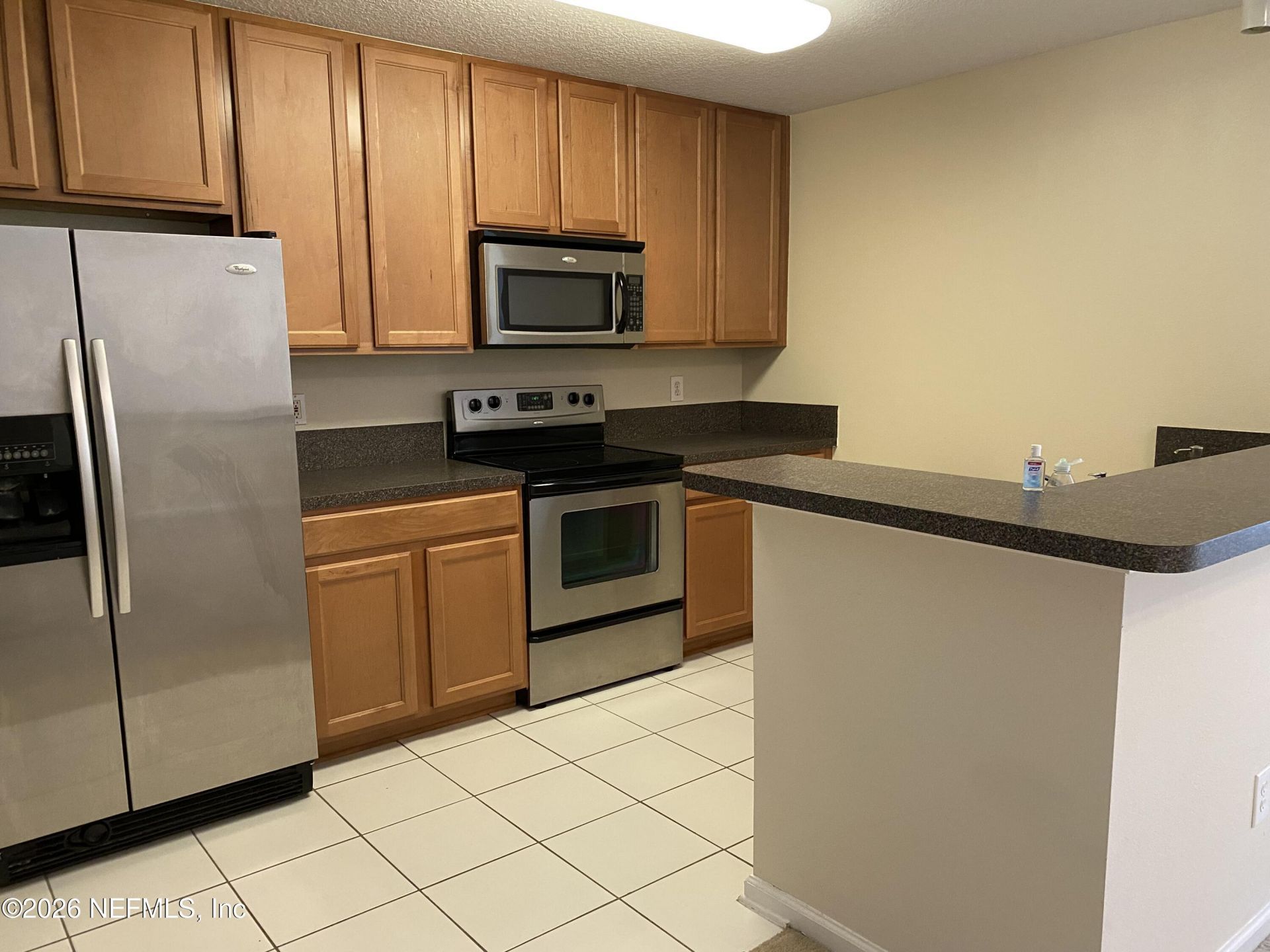 Spacious, open floor plan with vaulted ceilings, large kitchen with 42'' cabinets, split bedrooms, master suite includes step-in shower with molded seating and walk-in closet. Ceramic tile in kitchen and baths. Attached garage and laundry area downstairs. Well landscaped and maintained gated community with pool and exercise center. Convenient Southside location right off Baymeadows with easy access to I-295, JTB and I-95.