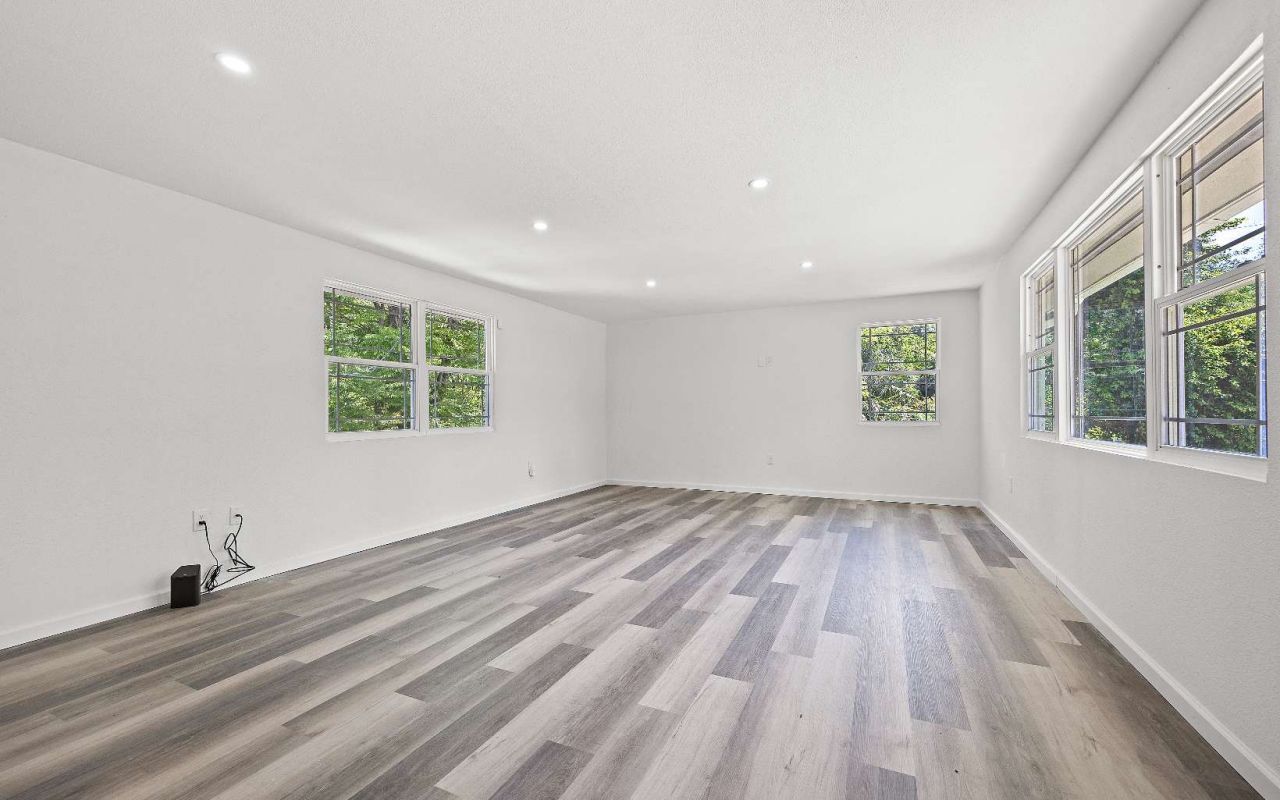 More than meets the eye with this unique home! It has been completely renovated with new Plumbing, Sewer scoped from City and updated, All-new electrical, framing, drywall and ceilings, completely new LVP flooring, trim, baseboards, windows and doors (except the 2 exterior doors & 2 big windows downstairs) Also brand new A/C and heater upstairs with smart thermostat and all new kitchen cabinets, appliances, lights, bath vanities, etc. 2 New mini-split A/C & heaters downstairs. Vivant cameras and climate control and door lock remote security system already installed! There are 5 bedrooms, 3.5 bathrooms, it's the perfect home for extended family. Upstairs are the main living area, kitchen, plus 3 bedrooms and 2 full bathrooms. One with a sitting room or office and wood deck off of it. Downstairs you have 2 more bedrooms, a bonus room/office with large family room and 1 and a half baths. There is room for a kitchenette too if desired. Driveway extends down for separate entry to the lower level for convenience. The back yard fronts a small creek. There's a lot to offer here with this floor plan and number of bedrooms available. Nothing else like it, so don't wait to view it.