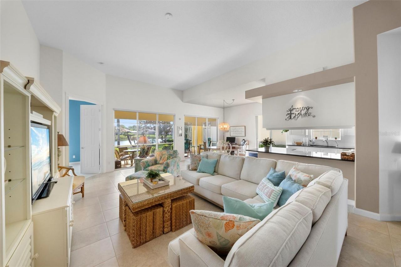Welcome to the sought-after Oakmont model in the vibrant community of VillageWalk-perfect for buyers ready to embrace an active, resort-style lifestyle. This meticulously maintained 3-bedroom, 2-bath home with a den offers an open floor plan enhanced by soaring 10- and 12-foot ceilings, creating a light, bright interior with a relaxed coastal feel. The spacious kitchen features granite countertops, a closet pantry, and flows seamlessly into the main living areas, which are finished with tile flooring for easy living. The primary suite is a private retreat with an ensuite bath and abundant closet space, including a generous walk-in closet. Two additional bedrooms and a versatile den provide flexibility for guests or a home office. Step outside to your screened lanai overlooking tranquil water views-an ideal setting for morning coffee or evening gatherings with friends. Additional highlights include a dedicated laundry room with upper cabinets and a utility sink, plus a two-car garage with convenient attic storage. Built by DiVosta Homes using poured reinforced concrete construction, this home offers lasting quality and peace of mind. Residents of VillageWalk enjoy beautifully landscaped grounds with scenic lakes, charming bridges, and tree-lined streets. Amenities are second to none, including a resort-style pool and lap pool (both geothermal heated), state-of-the-art fitness center, six Har-Tru lit tennis courts, pickleball, bocce, and basketball courts. The community also features a restaurant and tiki bar, gas station, hair salon, boutique, and a full calendar of activities coordinated onsite making it easy to connect and make friends.With a reasonable HOA fee covering lawn maintenance and irrigation, plus a 24-hour manned guard gate, this community offers both convenience and security. Ideally located near Siesta Key, Legacy Trail, Costco, Publix, as well as shopping, dining, medical facilities, and the arts-this home truly has it all.