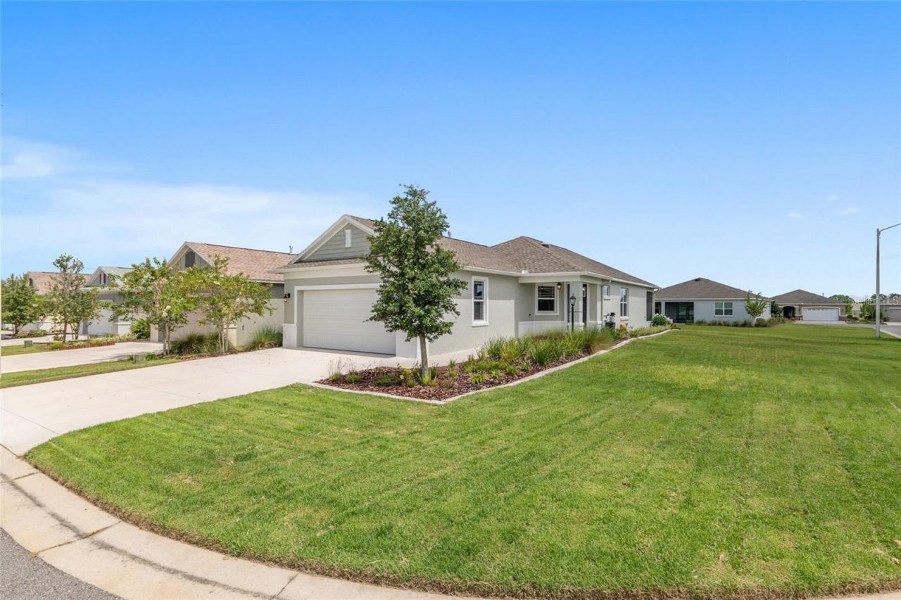Home Sweet Home with This Better-Than-New Beauty in Weybourne Landing!Welcome home to this beautifully upgraded corner-lot gem located in the highly sought-after community of On Top of the World. Thoughtfully designed and meticulously maintained, this home offers the perfect blend of comfort, style, and value-competitively priced against both new construction and resale homes in the neighborhood.Step inside to a light-filled great room featuring elegant crown molding that flows seamlessly into the dining area and upgraded kitchen. The kitchen is loaded with desirable features, including designer countertops, stylish backsplash, upgraded cabinetry with lazy Susan, pantry, breakfast bar, stainless steel refrigerator, gas range, and convenient disposal button.Sliding glass doors lead to a screened lanai complete with a ceiling fan, TV mount, and knee wall-ideal for relaxing or easily converting into a future Florida Room. The outdoor patio is already equipped with a gas line, making it perfect for grilling or adding a summer kitchen.The split floor plan provides privacy for both owners and guests. The spacious primary suite features a large walk-in closet, dual sinks, and a beautifully appointed bathroom with a frameless glass shower, built-in bench, grab bar, and private water closet with solar lighting. The guest suite is tucked away in its own alcove, with easy access to a full bath and nearby laundry room, complete with washer, gas dryer, and additional storage.Enjoy Florida living at its finest in the extended paver patio and fully fenced backyard, surrounded by mature landscaping for added privacy. The oversized garage (extended 4 feet) includes an expanded driveway, hanging storage, shelving, and fold-down worktables-perfect for hobbies or extra workspace.Additional upgrades include a Ring doorbell, wireless thermostat, gutters (front and rear), Genesis water softener, and the added benefit of no CDD fees or land lease.Weybourne Landing residents enjoy access to a private clubhouse and pool, as well as amenities like pickleball, mini-golf, a dog park, and more. An optional membership provides access to the main On Top of the World amenities. Conveniently located near Sholom Park and Circle Square Commons, this home offers easy access to walking and biking trails, dining, and entertainment.This better-than-new home on a premium corner lot truly stands out with its upgrades, curb appeal, and lifestyle features. Move-in ready and waiting for its next owner-schedule your showing today before it's gone!