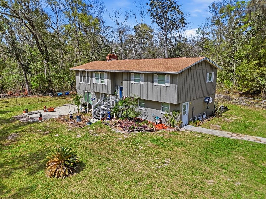 Check out this Suwannee River lifestyle opportunity with private spring access! This spacious 4 bedroom, 2 bath two-story home offering 2,660 sq ft sits on 0.43 acres in a truly special location just seconds from the Suwannee River. With a unique layout and incredible surrounding natural beauty, this property offers the perfect opportunity for someone to create their dream river get-away, full-time residence, or investment property. Inside, the home features two kitchens and two separate living areas, offering flexibility for multi-generational living, guest accommodations, or potential rental possibilities. The upstairs sun room is a standout feature, surrounded by large windows that fill the space with natural light and provide beautiful views of the surrounding landscape. The homes design offers great bones and a layout full of possibilities for customization. Outside you will find a detached two-car garage/workshop with a partially finished bathroom already plumbed, creating additional potential for workspace, storage, or future guest space. One of the most unique aspects of this property is its proximity to the neighborhoods private spring, available to residents for an optional $30 annual membership. This also provides access to a private boat ramp and riverfront acreage to camp or grill along the Suwannee River perfect to enjoy the full potential of the Florida outdoors. Adding even more appeal, the property borders hundreds of acres of nearby public land, providing additional privacy and outdoor recreation opportunities. Located just 10 minutes from Chiefland for shopping and dining and 30-40 minutes from Gainesville, this home offers the peaceful lifestyle of river country while still being within reach of city conveniences. Situated in Gilchrist County, known for its lower property taxes, this property combines value, location, and potential. Whether youre looking for a river retreat, investment opportunity, or a place to transform into your dream home, this property is ready for its next chapter. $5,000 offered with acceptable offer for closing cost, down payment or improvements. Call today for a private tour!