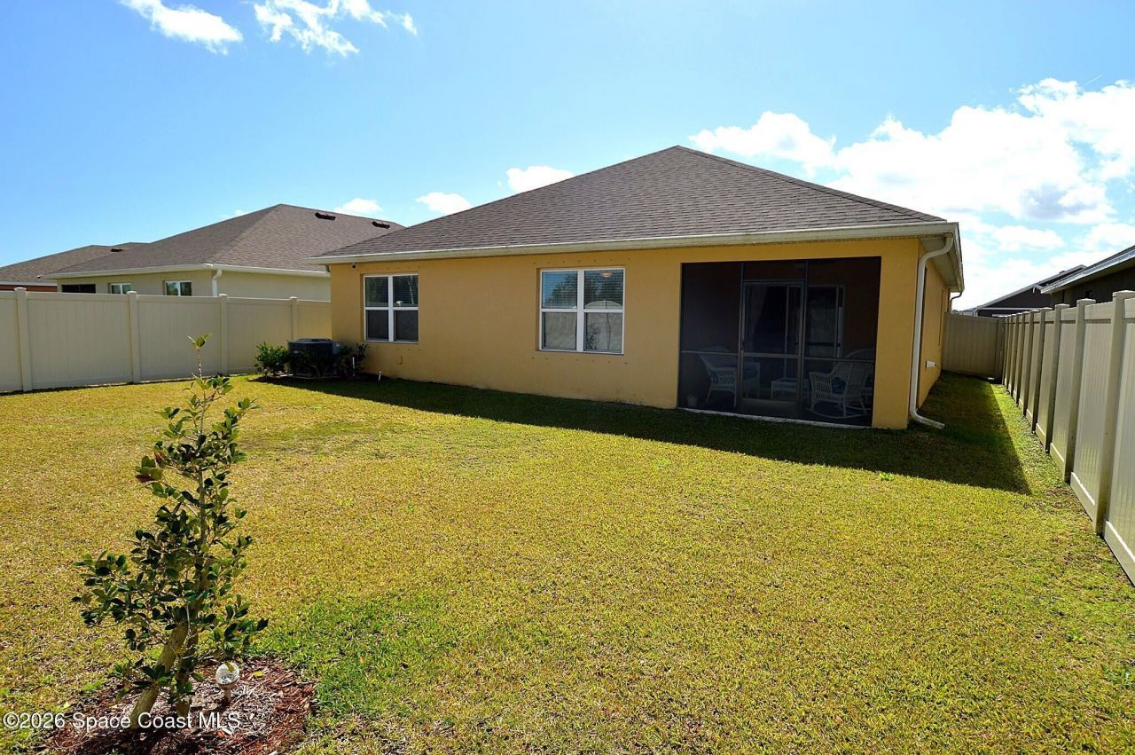 Welcome to 977 Trinity Street in Rockledge, Florida, featuring the popular DR Horton Cali floorplan with the appeal of almost-new construction. This well-designed single-story home offers an open-concept layout that connects the kitchen, dining, and living areas, ideal for both everyday living and entertaining. This fenced rear lot offers added privacy and a peaceful setting with no rear neighbors. The split-bedroom layout provides a private primary suite, while additional bedrooms offer flexibility for guests or a home office. Conveniently located with easy access to I-95 and major roadways, this home is close to shopping, dining, medical facilities, and local employers. Space Coast beaches, Port Canaveral, and area attractions are just a short drive away, making this an ideal blend of comfort, location, and accessibility.